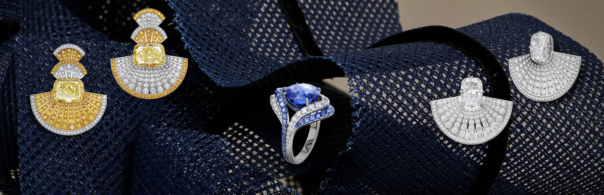 Each gemstone, whether Fancy Yellow diamond, royal sapphire, ruby, or emerald is chosen for its distinctive brilliance and depth of colour. The harmony of volumes, contrasts and light creates a timeless visual language, giving life to truly remarkable pieces. The modularity of certain earrings, transformable according to one’s desire, reflects this quest for balance between innovation and refinement.
