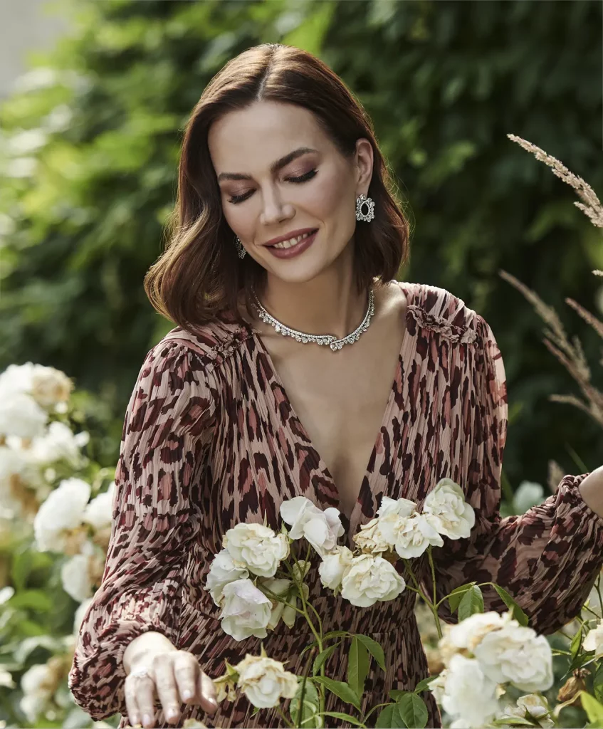 The ‘Pompon’ necklace embodies rare elegance, set with lustrous Tahitian pearls and adorned with seductive midnight black and shimmering white diamonds.