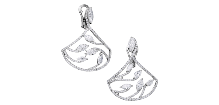 Earrings “Fan’tasia” in 18kt white gold set with 12 marquise cut diamonds 4.67 cts and 238 diamonds 1.94 cts.