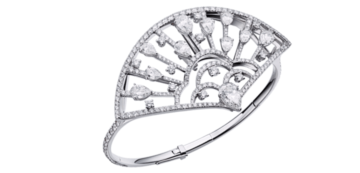 Bracelet “Fan’tasia” in 18kt white gold set with 11 marquise cut diamonds 7.30 cts and 470 diamonds 8.47 cts.