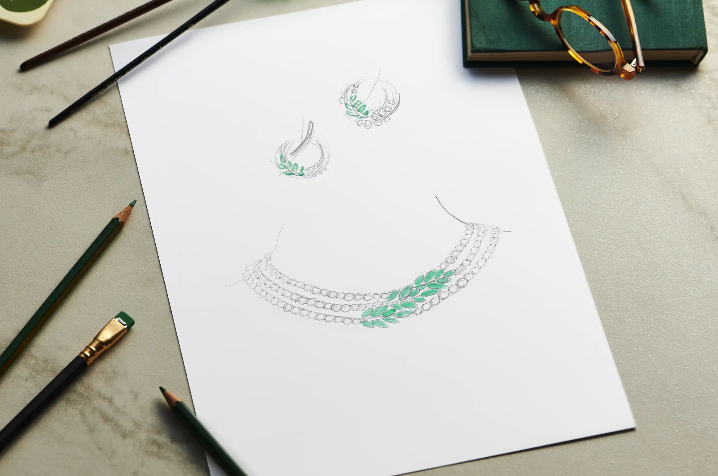 Our Laurea parure draws inspiration from the laurel tree sacred to Apollo, the Greek god of music and light.