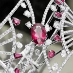 Art Deco has always been a source of inspiration for Adler, often integrated into its creations with streamlined lines, geometric shapes, and a pronounced sense of modernity. Diamonds, frequently cut into distinct geometric shapes like the marquise, further enhance this modern aesthetic. The bracelet and earrings complete this symphony of light, where the interplay between clean lines and bold curves create a captivating visual dynamic.