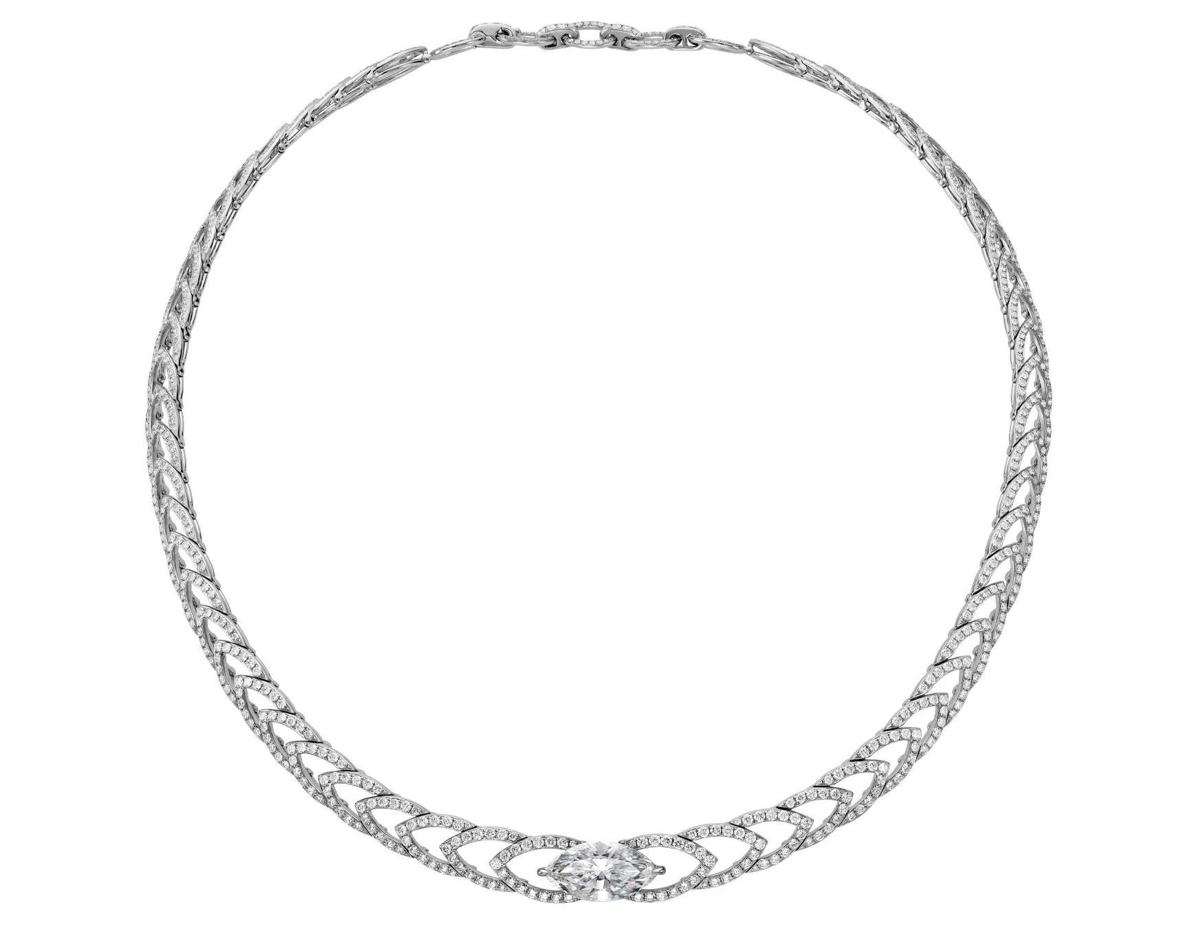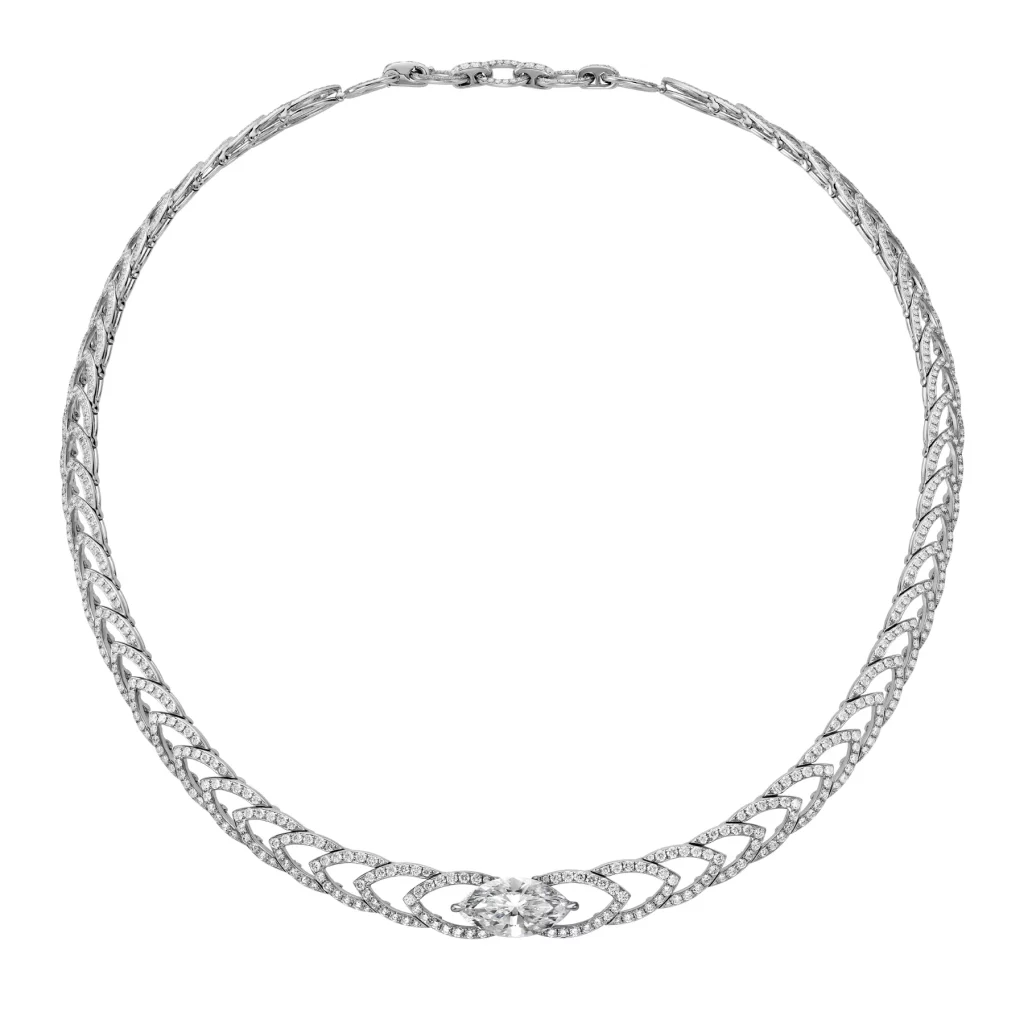 The “Marquise 1925” collection stands out for its assertive design and distinct geometric shapes, paying tribute to the Art Deco period. By wearing this necklace, you claim a piece of history—a jewel that transcends eras and embodies the perfect fusion of art and jewelry. Each piece in this collection captures the spirit of the “Roaring Twenties” while speaking to the modern woman.